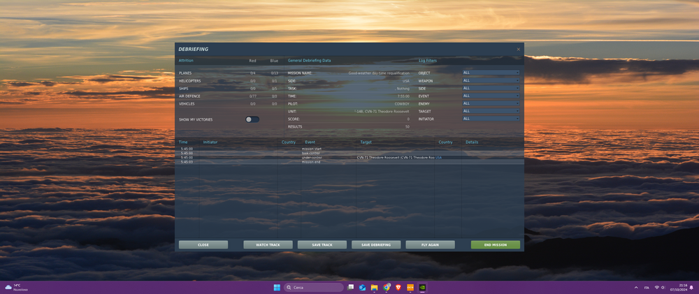 Every time I press the "Start" on the briefing page it starts loading th emission but instead of finding myself inside the cockpit upon the carrier deck I got the debriefing page with "mission start" and "mission end" within the 3 sec times. The campaign worked fine until I updated to the DCS open beta 2.9.8.1214 MT version. I already tried to restart the campaign, to repair the DCS files, uninstall and install it again, but none has worked out so far. After the update no joy at all... Other campaigns work fine. abcd.log