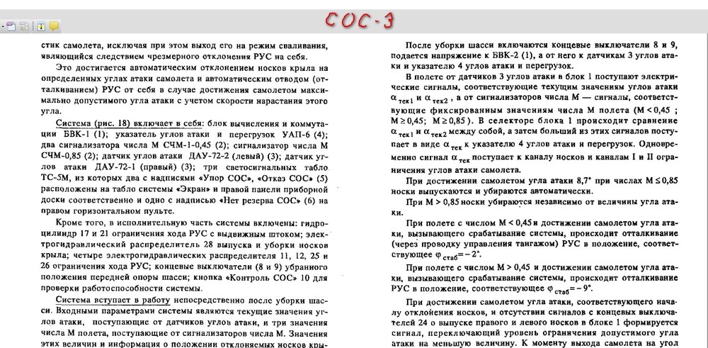 Слушайте, я не говорил что СОС управляет положением закрылков в выпущенном состоянии. Прочтите пару страниц выше с моими постами то. Там пружина этим делом занимается. Про то как работает СОС я же текст не из головы придумал. В другом посте ещё одну страничку привёл, коротко: СОС определяет по углам атаки и скорости когда вываливать механизацию и толкать РУС. Просто прочтите ещё раз мой пост где приведено две странички. Я вообще не понимаю почему вы пытаетесь спорить со мной опровергая литературу из библиотеки МАИ по этому ЛА,