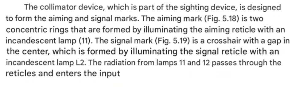 Тут вопрос сколько не в схожести или нет режимов индикации, например, есть картинка без индикация с НОП, а с индикацией ГСН. Просто конструктивно прицел сделан так, что там две призмы на каждой по трафарету и ламочке подтсвета и там негде засместить еще две такие призмы, для еще двух марок с преривистыми линиями на трафарете и подсветом, а ЖК фильтры не использовали в то время. В польской или словацкой версии не видно описание режима работы марок, только смехатическое обозначение. Поэтому только две марки: - сигнальная в виде креста - прицельная из двух концентрических колец Режимы подсвета: постоянное горение, мигание с частотой 2 герц и выключенное. Все остальные виды прицелов это комбинация самих марок прицелов и режима работы подсвета. Можно сказать что ранее использовали Щели-3УМ НВУ2М, что видно по старым роликам в ГДР, но у нас НСЦ в модуле, похожа на нашлемку СУРА ( развитие Шели, но после распада СССР), но скорее какая-то поздняя модификация НВУ-7 Все это делали на заводе Арсенал в Киеве. И принцип формирования марок координально скорее не менялся. Просто мне кажеться, что пунктирную взяли буквально из изображения в документации. В одном форуме кто-то купил старую Щель-3УМ с НВУ-2М и разобрал, фотки ниже 1я фотка сигнальный крест 2я - прицельные кольца 3я - комбинация двух первых частей Написал ранее в баг репорт, сказали все правильно у них, поэтому сделал себе мод как поидее должно быть.