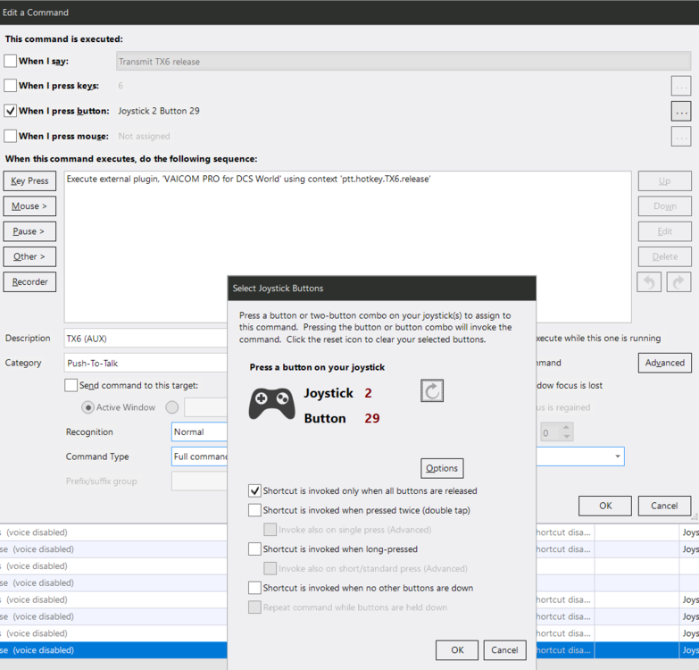 We can't really diagnose the TX6 issue unless you show the details of your TX6 settings in VA. Are you certain that you have the TX6 press and release bindings exactly as specified in the VAICOM manual? It's not surprising that you get no response if listening is suspended before you give your command. Based on the VA screenshot your computer never heard that command.