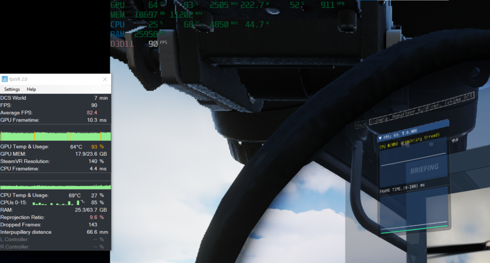 DCS FPS indicator does not detect CPU and GPU limits correctly in VR. It shows "CPU bound" message even if CPU frametimes reported by SteamVR and OpenXR are much lower than GPU frametimes. The game is in fact GPU bound here: And here we're simply at 90Hz refresh limit, still "CPU bound".