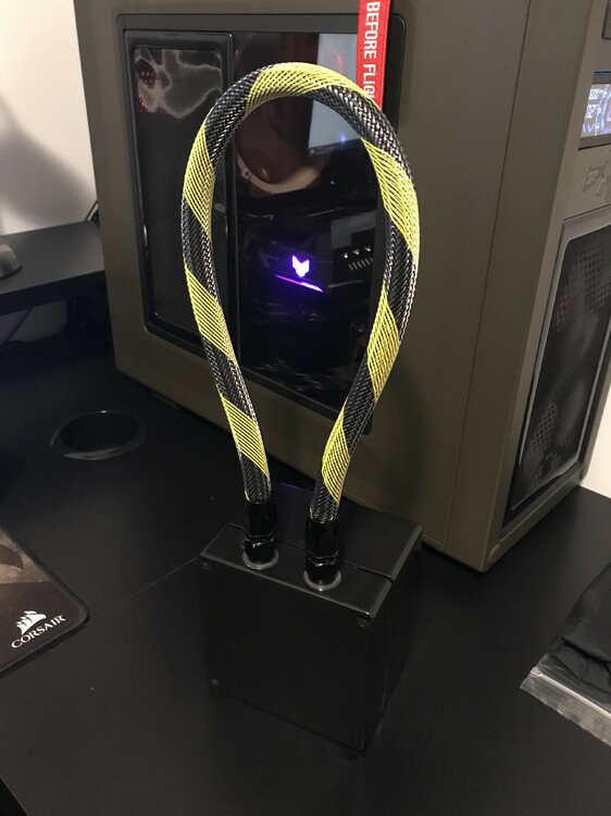 Hey folks, I wanted to share my endeavor with anyone who might be interested in ideas for putting together a fairly easy ejection handle for their cockpit. I was inspired by "Troll" on the Mudspike forums (https://forums.mudspike.com/t/eject-eject-eject/2985) and began designing an ejection handle that would offer some physical resistance. I initially put together a programmable 3 Key Macropad Keyboard as a side ejection handle (until I could find a better solution), and then went down the rabbit hole of tinkering. This is the very first barebones iteration: While this had worked as a temporary solution by mounting it to the side of a mounting plate beside my chair, I began drafting different designs and doing some research online that would suit my needs for a center mounted pull to eject handle. Through some trial and error obtaining different components and conducting painstaking measurements, I finally came up with a simple and effective ejection handle. Completion of the design: Mounted and ready: Two plastic plates were created (courtesy of the wife) using her 3D printer. One was to attach the bolts together, acting as an elevating plate that activates the keyboard when it is raised by pulling the handle up, and a simple rectangular box to fit into the space above the upside down keyboard. The "Top Plate" fit after removing some plastic pieces on the inside of the housing unit at the back. Holes were drilled through the back of the housing unit so that it could be mounted to the Flight Seat, with another hole drilled through the bottom for the USB cord. By far, I would say getting the holes of the "bottom bolt plate" just right to align with the holes in the top of the housing unit through the flanged bearings was the most difficult part. If you're using a 3D printer, I would highly recommend printing some small thin plates with the holes in them before printing the full scale plate to ensure a proper fit (and save on filament). If the holes in the plate and top of the housing do not align, the bolts become slightly angled and hard to move further up or down. The spacing I have between the holes at the top where the tubing connects to the bolts is 1 1/16" as indicated on the sticky note as well. I've included a list of easily procurable items from Amazon and other sources that helped me put this all together. Some of these items may be found locally, such as the Trailer Leaf Springs which I found at a nearby trailer shop. Programmable Controller - 3 Key Macropad Keyboard: Easily create a macro that mimics CTRL E 3x by downloading the FootSwitch (PCSensor) software Housing - LeMotech Electrical Box: Variety of sized boxes to suit your needs to house the components 4.7 x 4.7 x 3.5" (120 x 120 x 90 mm) Handle - Silicone Tubing Hose: Durable, yet flexible enough to pull on 3/8" ID 9/16" OD 8' Feet Long Handle Cover - Braided Sleeving: Used for esthetic over the tubing with a variety of color options 3/8" Diameter 25' Feet Long Safety Stripe Handle Connector - EVIL ENERGY 6AN Straight Fitting (x2): Connects the tubing to the Shackle Bolts Flanged Sleeve Bearings (x2): To guide the bolts straight down 14mm x 16mm x 12mm Shackle Bolt - Trailer Leaf Spring Shackle Bolts (x2): Connects the tubing and plate that elevates to touch the keyboard 9/16" -18 X 3-1/2" Compression Spring (x2): For physical resistance during activation, but returns to its deactivated position once it's let go 3-1/4" x 13/16" Hope this helps anyone that is looking for some options in creating a fully functional ejection seat handle!