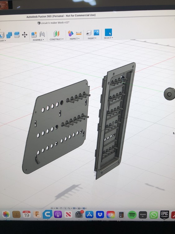 Update on work in progress- Circuit Breaker panels. The left-side one is almost done. Slightly off scale, narrower than the real thing due to the rest of my build… but I think that’s ok. Each bank of switches is a dummy, and only the lowest one will activate all in DCS through the Hall sensor. Magnets will give a bit of “clicky” resistance and snap to the action. Reprinting the black handle as it looks too big, and needs to be in 2 halves for a cleaner print. The paint finish will get some aging and scratching too, to look more worn in and abused. And labels added too. Already working on the right-side panel. 9D89BA05-E085-46A5-B731-3D73D54F6904.MOV