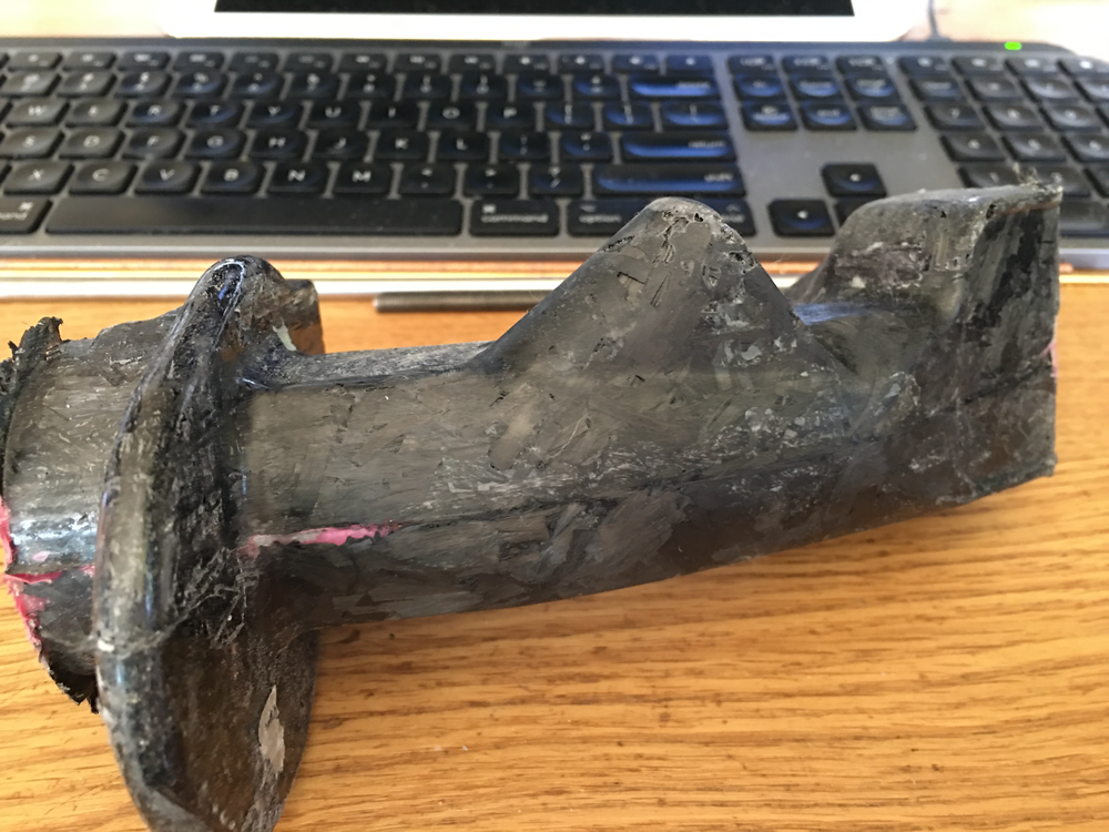 21. Kind of works. There are some "forging" defects. So, next forging will correct that. However, the biggest problem is there is pretty much no drafting angles... so it's very difficult to extract it from the mold. I pretty much destroyed the mold (20 hrs printing each half). I might be able to cast one more out of it... but... that's not good. So, now the idea is... how about just offset the shell out, say 1mm or 2mm, and add some reinforcement ribs... that's the "disposable" one-time use mold! After casting/forging, just destroy the mold! Doh! Also, as you can see, the seam has some red release film got pinched.... these are some casting skillz I have to learn and perfect, etc. etc. But, in general, the carbon fiber prototype is heading toward the right direction. I might even consider printing a mold for casting the disposable mold with high density foam (quite difficult to buy very high density ones, it's a 16 lbs density 2-parts expansion foam that can give you a lot of details and a lot of strength). nullnull