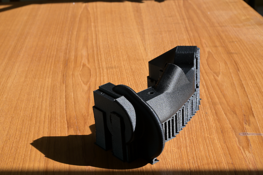 1. 100% infill Nylon 12 Carbon Fiber. Fresh off the printer, support tore off... no sanding yet. I am pleasantly surprised about the raw surface texture where the support touches main body... not bad... a little sanding would take care of that. This is extremely strong! Also, take note on the back of the handle where the main body bends... This is the top of a curved 2-directional curved surface, printed horizontally. Usually, with fixed layer thickness, 0.2mm, you will get a serious stair case isolines. I turned on the adaptive layer height printing, so those staircase lines are dramatically reduced together with drastically increased print time. But, I think this is worth it. It will make sanding a lot easier. But, like I said in the previous post... it took about 12 hrs to print it.
