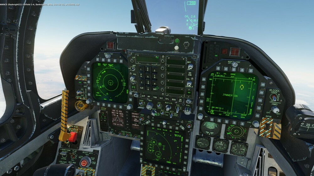 Ciao ho provato con l'F16 ma anche in questo caso non ho contatti visualizzati sull'MFD (chiaramente il Datalink era acceso). Francamente non capisco quali siano le condizioni affinchè i contatti ostili vengano visualizzati sul DL. Nei server 4YA pvp i nemici comparivano molto bene, sia nella SA page del 18, che nel D/L del 16, ma con questo non voglio dire assolutamente che sia una questione collegata solo ai sever Banshee. EDIT: Aggiungo uno screen in game dove si vede che l'Awacs mi dà un contatto nemico a 45 miglia (scritta in piccolo nell'angolo in alto a sinistra) ma nella pagina di SA non viene visualizzato alcun contatto. -