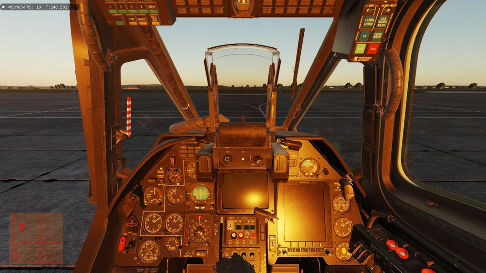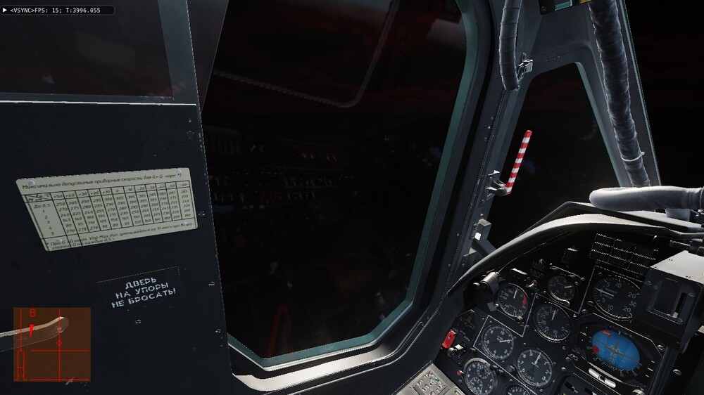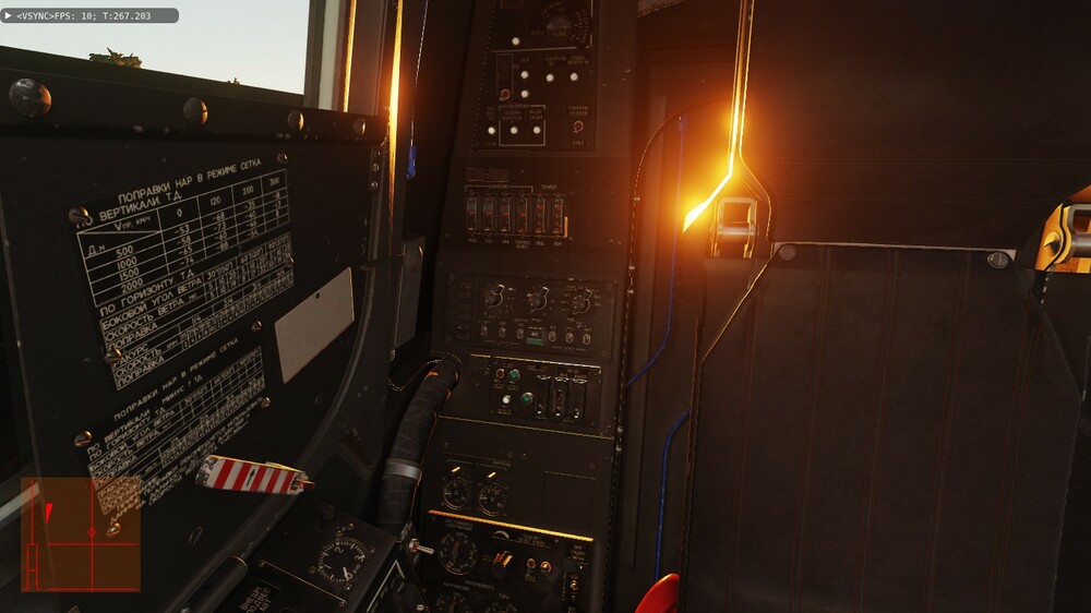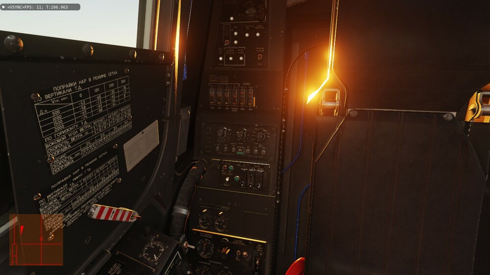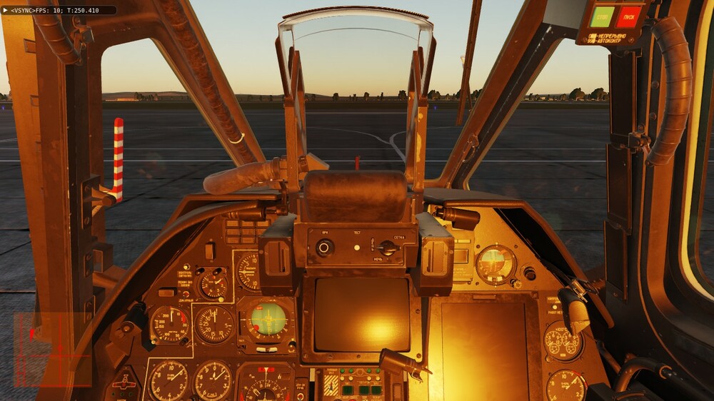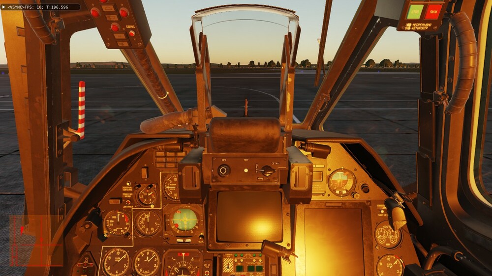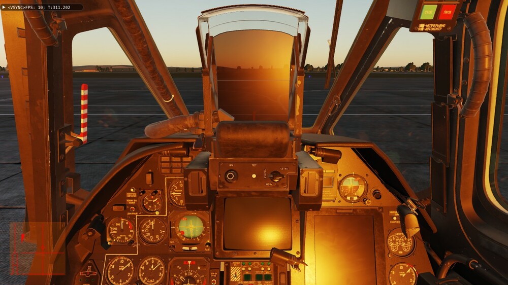 Доброе время суток. Давненько уже заметил один "глюк" (если моторный отсек не прозрачный) - у меня стоит 22 июня, 21-00. Вертолёт в Анапе на 5-ой паркове (ЧА-2) и на 6-ой (ЧА-3) носом к полосе. Сумерки, солнышко чуть выглядывает. А кабина с приборами освещается заходящим солнцем. При развороте головы видно довольно яркое солнце в щели за креслом пилота, точнее между креслом и "правой задней" панелью (панель контроля, вроде). Если нужны скрины - сделаю.