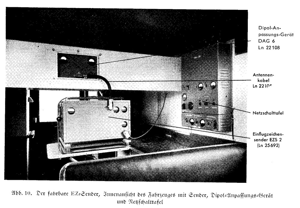 15. These are some more pictures that may be of help (including a new antenna photo) : The above is a photo of the LFF Lorenz antenna system in Berlin airport before the war (early civilian version, likely modified in the future for use by the Luftwaffe, but you can see that the structure of the 3 rods is identical with AFFA-2). It is taken from the original paper submitted by Ernst Kramar, the creator of the system, in 1933. The paper is written in English and can be found in this link : http://www.nonstopsystems.com/radio/hellschreiber-modes-other-hell.htm scroll down toRef. 137: "A new field application for ultra-short waves", Ernst Kramar, Proc. of the IRE, Vol.21, Nr. 11, November 1933, pp. 1591-1531 (the page is secured, if link doesn't work you have to go there and download the pdf yourself) For the truck images, I found the following : This is a truck that carries the antenna equipment for the Lorenz system. The image is from Werner Thote, pp. 20-25 in "Radiobote", Jg. 2, Heft 9, May-June 2007 , which can be found on the same webpage as the previous link, at ref. 70. The quoted text on the image (google translation from german) says : "mobile ground equipment landing beacons were installed in three trucks for the three radios . They contained in addition to antenna systems and accessories recover the 0.5 kw driving sender EZS -2. The picture on the right shows the side to remove the antenna from the roof of the driving force transmitting truck Kfz. 305/29" original : "die mobile bodenanlagen der schweren Landefunkfeuertrupps waren in drei Lkw fur die drei funkfeuer eingebaut. Sie enthielten neben antennenanlagen und zubehor den 0,5 kw ansteuerungs-sender EZS-2. Das bild rechts zeigt die gleitbahn zum abnehmen der antenne vom dach des ansteuerungs sende kraftwagens kfz. 305/29." So, i think that it is likely that most Luftwaffe airfields used the 3-rod antenna and the AS-system inside a truck (as shown in the AFFA-2 picture in previous post), while the biggest ones, inside Germany may have had the time and resources to house the equipment inside a building (as shown for the Berlin airport). This is a hypothesis, perhaps a german speaking DCS member could read read the documents and make more robust conclusions about this issue. The inside of the Trucks carrying the EZ Markers (inner-outer beacon) should look something like this : This photo is taken from Luftwaffe manual 4451 (see previous post for link), where the EZS are described in detail. cheers