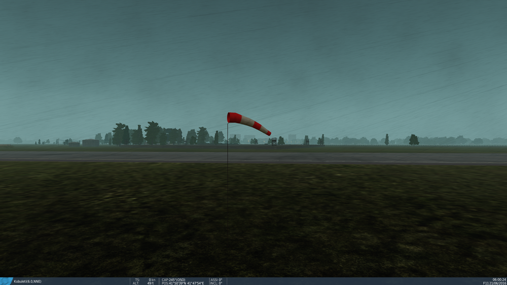 Hello there, A bug I just noticed, the rain fall direction influenced by wind is wrong, it is 180° inverted. Look in the attached screenshots, pay attention to wind direction shown by the small flag attached to tires and by the windsock, and pay attention to the direction the rain seem to fall from. It is 180° in the wrong direction, the rain falls opposite from wind instead of falling with the wind For info, the tires and the windsock are DCS vanilla objects, there are not from any mod