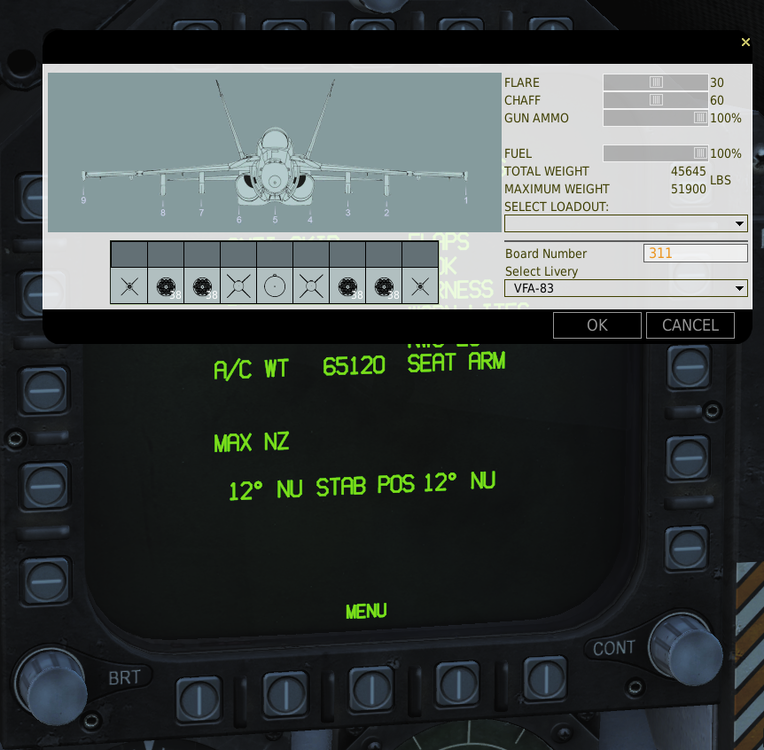 Title says it... here's a screenshot showing how extremely overweight you can make the airplane, 8x 19pod Mk-151s and your aircraft weight is over 64,000. Loadout manager shows single 19 pod of Mk-151 = 690 lb Aircraft weight page shows that it weighs 3019lb While a double rack is a whopping 6100lb