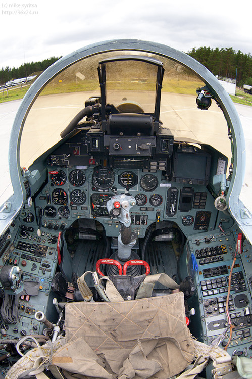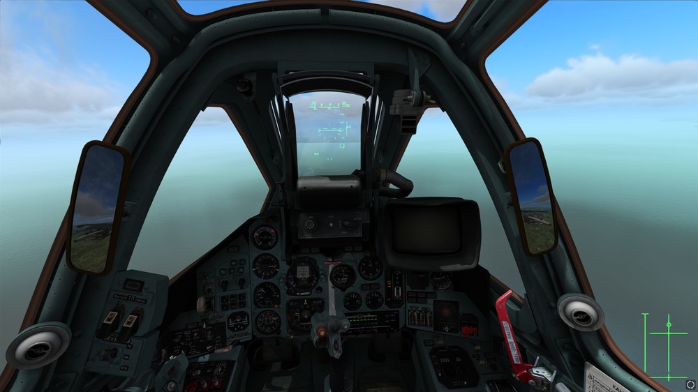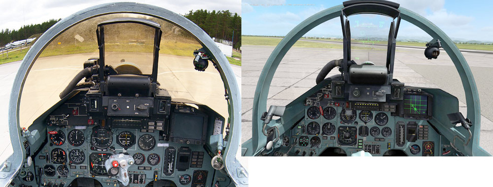 Похоже в реале фото сделано выше чем точка обзора по умолчанию в игре, при этом индикаторы хорошо видно. К тому же перспектива в игре чрезмерно глубокая по моему, и из-за этого слишком маленький КОЛС при расходящихся широко козырьках, ИЛС не квадратный, а на F-15 и неестественно огромная балка.