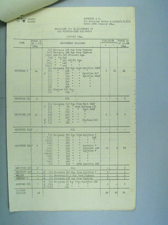 The Air Ministry disagrees with this notion. Force as of 1st January 1944: Spitfire V - 24 Squadrons Spitfire VII - 2 Squadrons Spitfire IXF - 11 Squadrons Spitfire IXHF - none Spitfire IXLF - 9 Squadrons Spitfire XII - 2 Squadrons Spitfire XIV - none, one Squadron (610) re-equipping