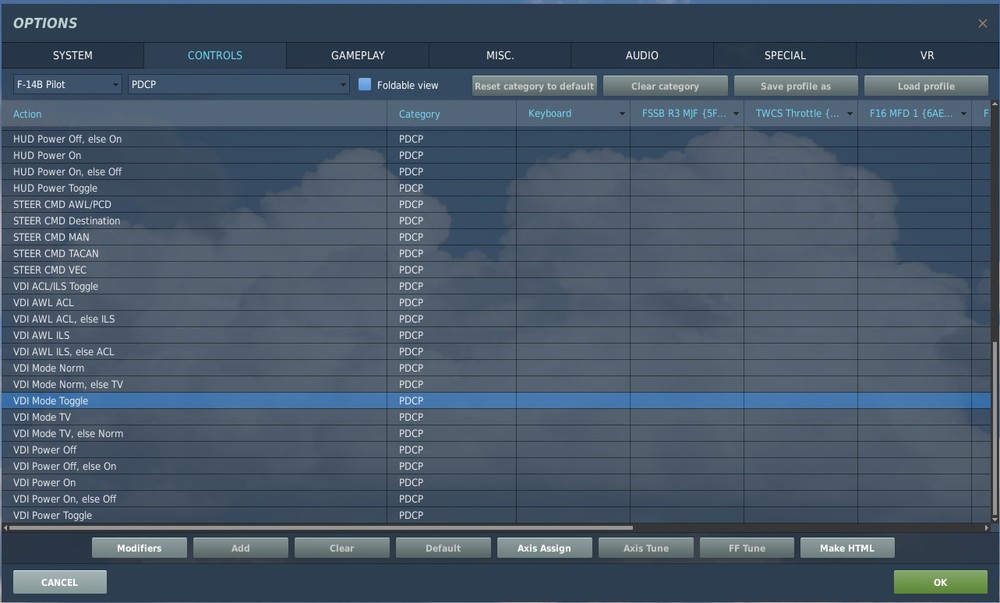 Just getting back into the Tomcat after a break, and not sure if this has been raised before (am sure I have mentioned it quite a while ago). I am re-mapping all my controls in the back seat and notice there are still a bunch of rotary selector knobs and 3-position switches that don't have any associated option to map to xxx increase/up and xxx decrease/down, as there are in many other modules like the Viper for example. Subsequently you are unable to map these controls to a stepping rotary encoder or a momentary 2-way toggle switch on say a DSD button box. Some examples missing this option would be the TID Mode and Range knobs, and the DDD Panel Aspect and MLC switches. You are forced to select your two most used positions for these dials/switches and map then to dial+/dial- etc. So for example I can only have 50 and 100 set on the button box knob I use for the TID Range knob. Same deal for the switches. In comparison every dial on the RADAR control panel is set up like this perfectly allowing you to toggle the knobs around the settings, and pretty much every knob and switch has this xxx increase/up and xxx decrease/down option. Just a suggestion to further improve the product, in VR I try to minimise the time I spend using my trackball as it is a bit clunky and it adds greatly to the #immersion actually using a physical knob/switch to manipulate the virtual knob/switch. A me-problem I know - also realise you guys are super busy :thumbup:.