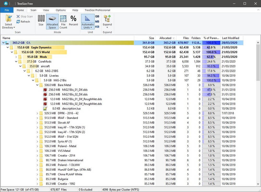 Have raised a thread about it a long time ago, and will say it again - I really don't think it is necessary to have multiple 256mb texture files, particularly for an aircraft you don't even own! The entire MiG-21 texture library totals up to a ridiculous 6.2GB...:huh:. I have entire games that don't take up that much drive space.