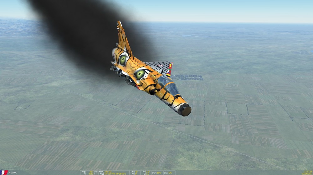 6. В DCS ВСЕ боты такие перцы. Мираж-2000 даже без плоскостей летает и воюет. Патчи валом идут, а DM ботов на прежнем уровне. Грош цена навороченным и дорогим модулям, если боты не адекватные. Кстати, FM у них тоже убогая. Взялись бы ребята из DCS и решили разом эту проблему, не отвлекаясь на другие. Пусть это будет какое то время месяц-три, мы подождём. "Сейбр" прекрасный модуль, а воевать на нём отвратило, потому, что боты МиГ-15 в полном неадеквате. Вот наглядно видны попадания в двигатель, тем не менее бот продолжает воевать, на второй картинке, чуть позже, ещё добавлены попадания. И как говорит один юморист:" И никакой реакции!" Кстати, посмотрите на какой скорости воюет бот.