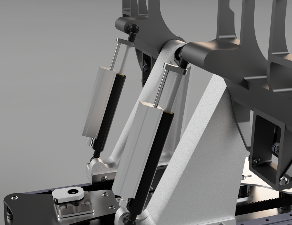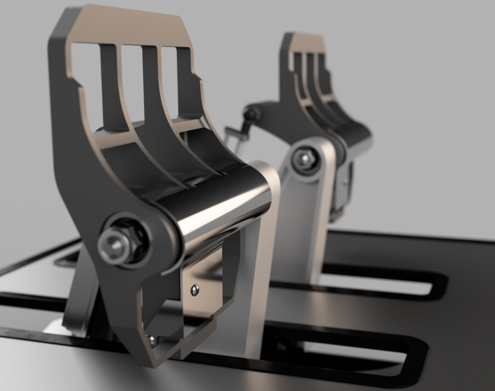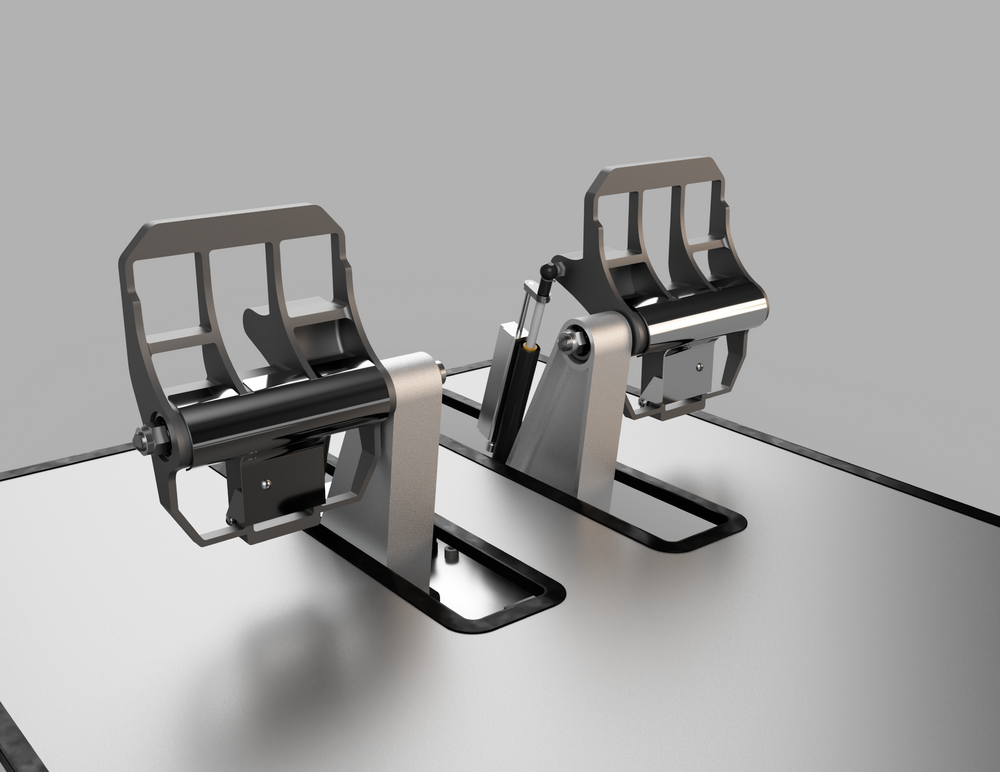 10. Realized I never posted here about this but a few months back I spent about 5 days designing my FFB pedals I'll be building at some point. They are based off the UH-60s pedals and will use the FFBeast firmware to run it. This is the first model I've actually put time into learning F360 for. What do yall think?(need validation in my life lmao) Will use gas struts and linear transducers for brake force and readings and the trim hold will be released when both pedal switches(the shiny plates on the front of the pedals) are depressed. Other than that it's just the hoverboard motor driving the FFB.