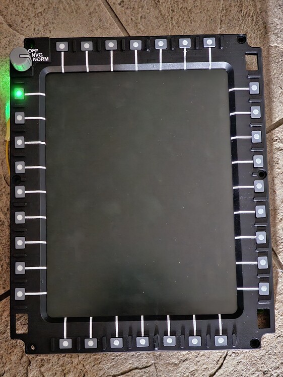 2. Hey all! With the 47 release around the corner, I figured I'd post my progress on my near 1:1 47 MPD/MFDs. Most progress in on pause til I'm able to get a large enough resin printer to print whole that way I can dial in fitment as currently I'd have to print in 5 parts which can be less precise. Also need a laser engraver as while the main buttons can be painted easily I cannot get good results for the rocker switch lettering. Hopefully once I'm back next year I can get this complete and up to my standards. My prototype PCB and print worked for the most part(found out none of my ground pads were actually connected to ground....) Anyways, hope you all like it! Can't wait to get this out there!