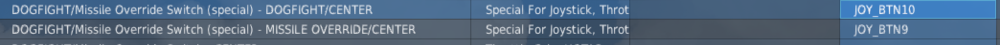 Hi, If Cougar DGFT/MSL 3-way switch works the same way as WH boat switch, you don't bind center position. Use the special binds "DOGFIGHT/CENTER" and "MISSILE OVERRIDE/CENTER". Basically these return the control to the center position when you no longer "press" the bound button (i.e. when you return the 3-way switch to center from DGFT or MSL positions). Here's my binds for TM Warthog throttle. I suppose Cougar has a similar 3-way switch, but button numbering is likely different: Hope this helps.