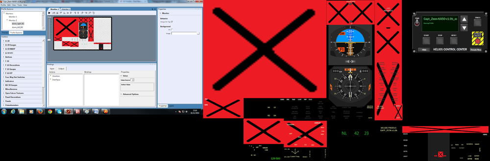 Hi iv downloaded capt_zeen Helios profile for KA 50 blackshark 2 but i am having a little difficulty getting it to work correctly. The 2 gauges you see in the picture work in the game as they should BUT the other guages, skval, ibris, and all the other instruments marked with a black X dont. 1) I have gone to interfaces and setup dcs blackshark. 2) I have reset monitors. 3) I have also placed the capt_zeen and profile folder in mydocuments,helios,profile folder as you will see in the picture attached Below is a screen shot of the profile working in Helios control center. One thing i have noticed is that ka50 does NOT show up under add interface in the profiles tab. Have i missed something out? I know i almost their :joystick: Any help would be greatly appreciated.