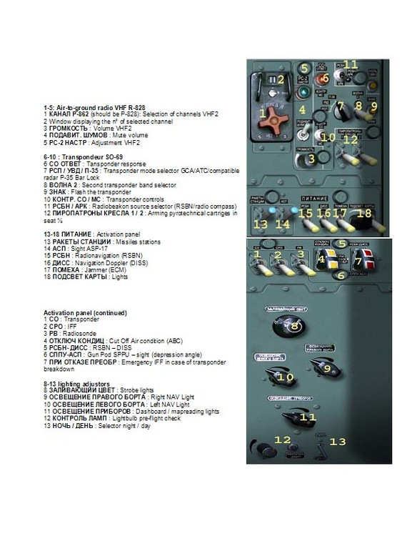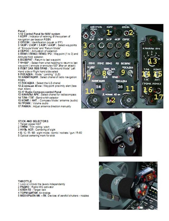 I just love the Su-25 series aircraft. And I for one would set asisde building the KA-50 Pit if there was a fully operational Su-25 cockpit. Even as a LOFC add-on (and yes..I WOULD pay for it.) I while ago I came across a french dokument that had ALL, and I mean ALL, the switches in the Su-25A Cockpit explained. So either the secresy of the pit's functions can't be that tight, or someone had a great deal of imagination when he wrote it.. Being under the understanding that the A-10 fully operational pit is forthcoming. And also knowing we have some "more than half decent" programmers in our comunity, I proporse that we try work with what we have and make the "frog-A" a semi functional cockpit? The plans for a simple "clip-on-desk" two monitor, two pc's hybryd cockpit is in my planbook already. The project was halted when I found that the left panels controlling the electrics, APU, Radios, NAV systems (Why in the name of whoever did they those to leave out the "go-around-left" or "go-around-right" functions on the 25's HSI I will never never understand..? Because that would make egressing to do another attack so much easyer.. So all you programmers out there.. how about going forwards with a goog example..? Ps. mayby this should be posted on the lockon forum...? PPs. I'll attach the previously mentioned document as soon as I get home.. And here are the first 5 pages: [ATTACH]252[/ATTACH] [ATTACH]253[/ATTACH] [ATTACH]254[/ATTACH] [ATTACH]255[/ATTACH] [ATTACH]256[/ATTACH]