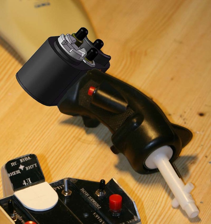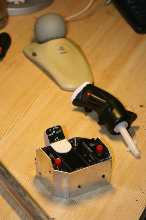 Cyclick Stick This is how I plan my Cyclic stick to work.. Quite simple once you have the handle to hack.. But the triggers are giving me a headache already.. The box will look like this: [ATTACH]247[/ATTACH] And stuck ontop of my already hacked old Thrustmaster I plan to achieve a result looking like this: [ATTACH]246[/ATTACH] Whish me luck guys..! Anyone got some detailed pics of the trigger mechanism out there..? It shure wuold help me a lot if I had that..?:helpsmilie: -