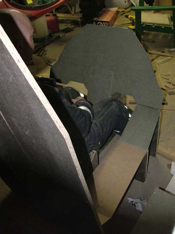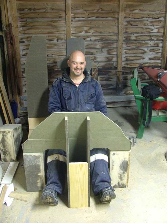 ...Pitbuild update 03.november 2007... Todays update.. Only Pictures as of now.. I'll elaborate on it later.. [ATTACH]118[/ATTACH] .. Yes..! That is me grinning here..! [ATTACH]119[/ATTACH] Seat back might seem a bit high, but I'll make a temporary seat-cushion tomorow and see if it needs to be lowered a bit. [ATTACH]120[/ATTACH] Qiute pleased with the proportions now . I buildt new front lower panels tonight because the old ones were to long (or at least I thought they were..) [ATTACH]121[/ATTACH] The setup without me in it.. Another thing I'll start tomorrow is to make the floor... [ATTACH]122[/ATTACH] The new Left front lower panel ready for the fuel cut-off and rotorbrakes handles.. Well that's all for today folks.. More updates tomorrow if all goes well. My plan for tomorrow is: 1. Make a seat cushion, and check the hight if the seat backside. 2. Start making the "floor" and designing the pedals. 3. Make a new upper frontpanel (the angles are not right, and I need to make room for monitors to project the instruments on). 4. Start working on the Collective stick. (Obviously I need to do this after making the seat cushion). :cry: