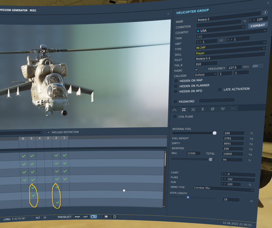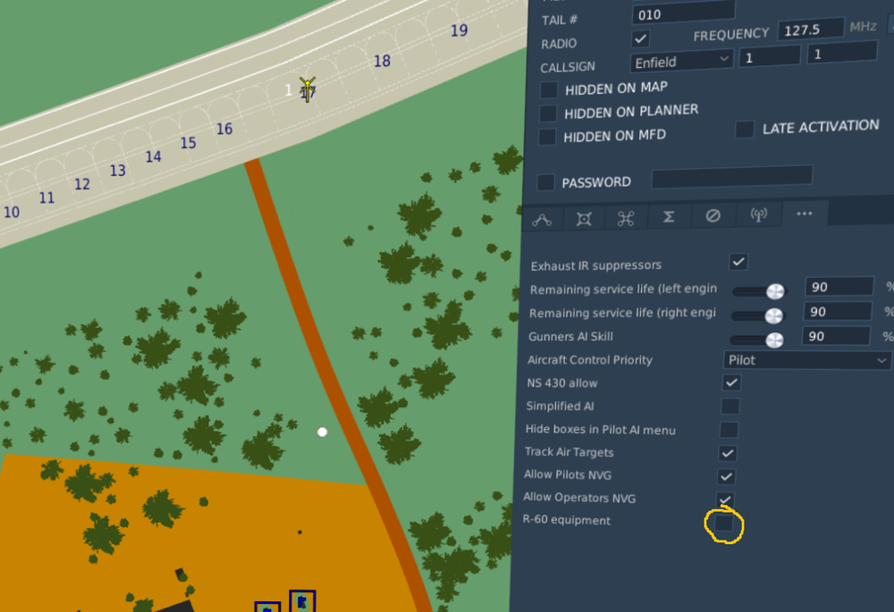 I've recently Joined the Rotorheads server. Entered an Mi-24P slot. Loaded double R60s. Only to discover that the R60 equipment was invisible but interactive. To reproduce this in the mission editor Place an Mi-24P in parking Disable R60 equipment Remove the payload restrictions for R60 Start the mission. The R60 equipment will be present in the cockpit but invisible