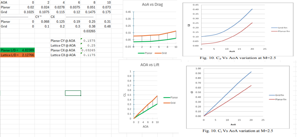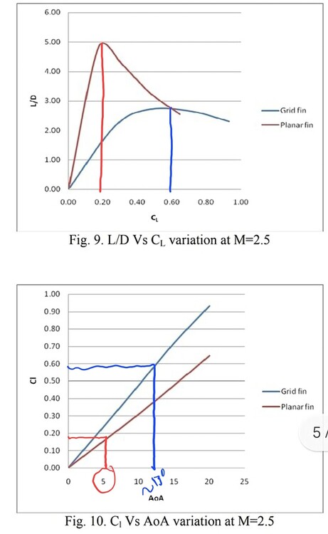 Can you post the definition of Kmakc. Another study to prove my point; data is from the US army supersonic wind tunnel with the reference area being idential between the two fins. Appears to be a study of using GMLRS body as a base with a planar and grid fin design. Study utilized CFD and supersonic wind tunnel testing and data. DREV is data from the wind tunnel. null nullOnce again in this study a suboptimal design was used for the planar fin as it was just a rectangle with a double wedge chord shape. Not to mention it was extremly large. nullNumerical Investigation of Aerodynamics of Canard-Controlled Missile Using Planar and Grid Tail Fins. Part 1. Supersonic Flow