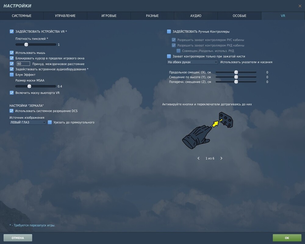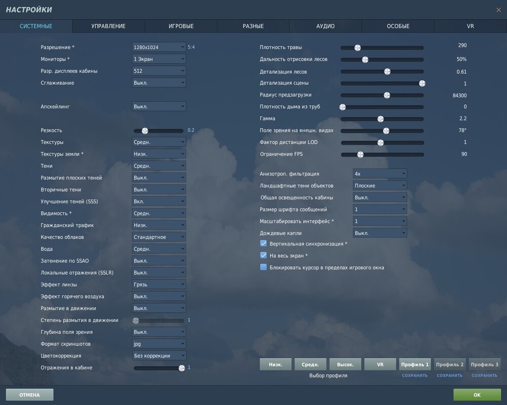 Накрутил, всё есть, как сказали. Но что-то мне подсказывает, что проблема таки не в ВР и софте для них, а в компе... Сейчас настройки того же ДКС у меня ниже, чем были летом. Но и с запуском в 2Д (просто на мониторе, без очков) лагает так же! Причём, что в ДКС, что в Тундре, лаги аналогичные... Вот настройки в ДКС (в Тундре тоже далеко не ультра):