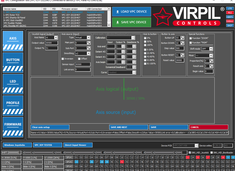 I use all the 3 rotaries as axis..... u need to create a virtual axis for the same..... rotation sensitivity and smoothness u can define according to ur preferences..... i have attached my settings for u to start with.... hope this helps.... null