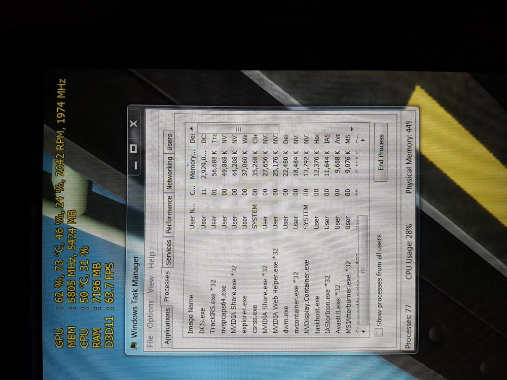 The picture below was taken after DCS had been playing for 5 mins. This was the huey instant action free flight mission. Unfortunately it took 12 mins 31 secs to load. Anyone notice anything out or that could be causing any issues?