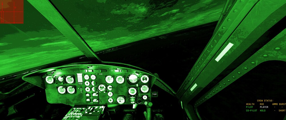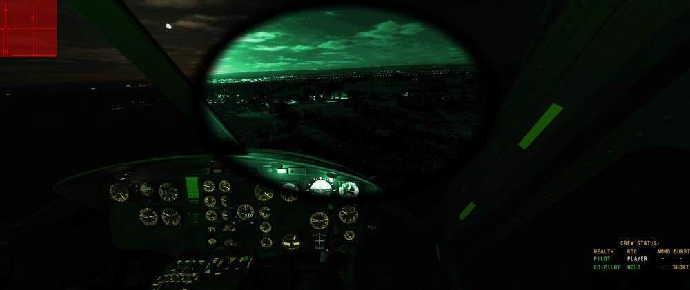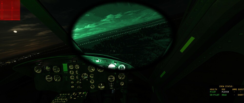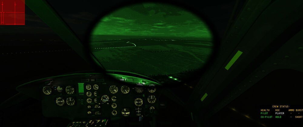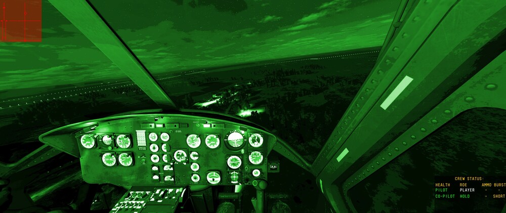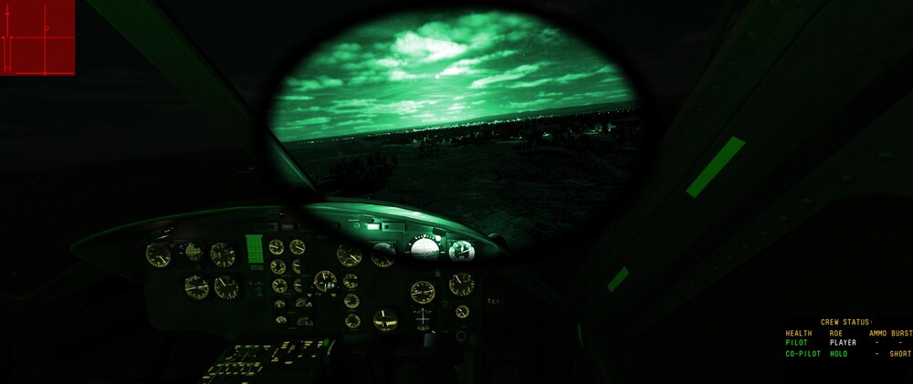 So good news all. I made a fair bit of progress over the last 2 days and I have sorted out the following controls/options - contrast - NVG color (eg what shade of green) - noise pattern (sprite type, size, timing) - noise intensity (much reduced by my current default as I think DCS is way over done) Doing all this though means using my own RBG-HSL/tinge-RGB conversion which means the default depth of field blur doesnt work. That is my next priorty over the next week and once I have that done Ill upload it all as a new version rather than drip feeding mod versions. Screen shots show 1. high contrast -this wouldnt be default but just evidence that everyone will be able to tweak the pickup/intensity curves 2. mid contrast - what ill probably have as stock settings 3. ring effect and my stock color 4 & 5. alternative color choice (also shows how moonlight/trees casting shadows is visible using my NVG amplification curves)