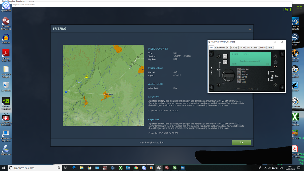 No response from Wingman Hi Guys. I hope the following makes sense to someone, I'm using VA with Viacom Pro, I fly the A10C mainly, I'm using the Surrounded mission to practice voice comms with my wingman. The VA speech box is working fine, beeps, static etc the problem arises when I try to issue a command to my wingman. The config box reads as TX1-VHF AM TX2-UHF TX3-VHF FM However as soon as I start the mission the PTT tab shows TX2-UHF change to CB UHF, this also shows in the comms menu top right of screen. I ask my wingman to go trail, I hear my own voice and wingman responds and starts to make his turn, and thats as much as I can get, any further commands ie Engage Armor, Air Defences etc etc, nothing, zilch, nada. I get the confirmatory beeps and the commands register in the VA box. I've tried, reinstall, the 2 min fix, everything I can think of but no joy, has anyone else had this particular problem ?