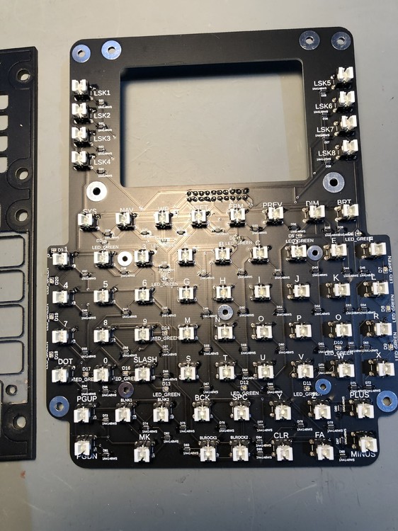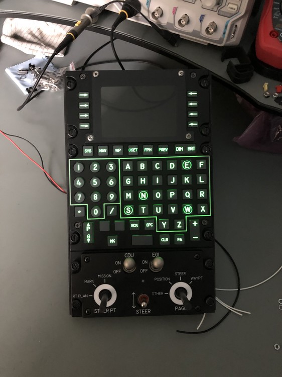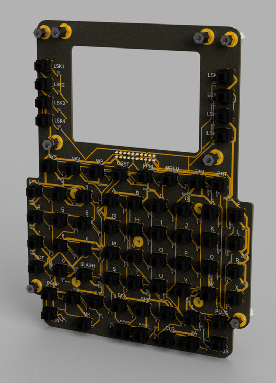 Hello all, With the exciting new release/update of the new A-10c II, I have decided it is time to build a functional CDU with an AAP as a single unit to place on my desk. I have long been interested in building a home cockpit but as of now lack the time to take on such an ambitious project, maybe one day! To kick start this project, I decided to purchase a set of the brilliant acrylic backlit panels and buttons available from pcflights.com for the CDU, AAP and also the new ARC-210 radio panel (which will be a future project!). The first task was to make a sloped enclosure for the CDU and AAP which was quickly made from scraps of aluminium I had laying around and sprayed black, next was to acquire all the switches and things needed for the job. Perhaps the biggest challenge for this project is finding a way to mount all the 67 pushbuttons on the CDU to a rigid surface and then wiring it all up. after some thought I decided the best and only practical way to do this would be to have a custom PCB made for it. I took many precise measurements of the panel and made an accurate drawing for laying out the PCB and when I was happy, sent the files off to be manufactured a minimum quantity of 5 for £15 total, bargain!. It took some time but when they eventually arrived I was very impressed at the quality of manufacturing and quickly got on with the long process of soldering everything together with close observation of polarities!, the result: And a test of the lamps: (note: the V key isn't lit in this image but it turned out to be a single missed solder joint, always one!) I plan to use DCSBios to interface with the module, as for the screen.. I am still figuring that one out More updates soon!, feel free to ask questions/give suggestions! The latest redrawn PCB and Arduino code (version 66) are published to the following GitHub link: ------------------------------------------------------------------------ https://github.com/crosshairs2230/A10C-CDU-PANEL.git ------------------------------------------------------------------------ Note: The zip file provided should be able to directly import into JLCPCB fabrication service, I am unsure about other fabrication services but would imagine them to be very similar. Let me know of any issues no matter how small