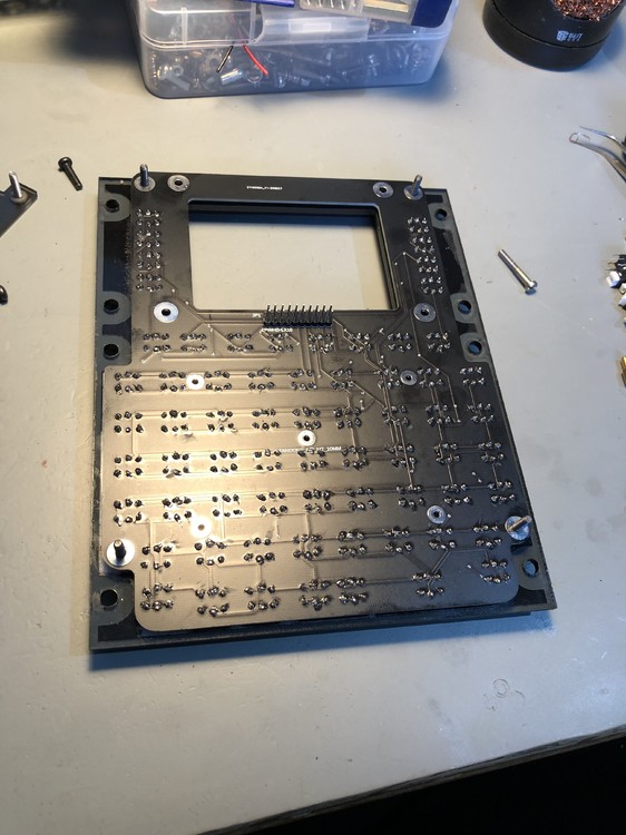 Okay so I think I have run into my first issue :shocking: I have been trying to get the code working in Arduino using the keypad library, I have it 95% working apart from column 1 which is really confusing me. After doing the first obvious step of checking the physical components for errors in soldering, I was convinced that the error was to do with a diode soldered the wrong way around as in the picture below, yet the error persists after fixing the polarity! The code is just a modified sketch of one of the keypad examples and is still quite a way from being augmented into DCSbios, my test code is below; any input from someone more adept at Arduino coding would be very helpful :) On a more positive note, I have managed to find a perfect-fitting screen designed for the raspberry pi, which I eventually want to use to control the screen text, the only thing I had to do to make it fit was extend the GPIO pins as pictured: Note: Unfortunately no front pics because without the PCB installed, all the keys fall out when tipped upright as I've tragically found out a few times! Now to get back to problem solving :D -