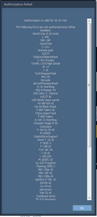 Hi I am using DCS world 2.5.6 as screen shot shown. Just 20 mins ago, I am trying to start this game, but the game failed to start and replied to me it doesn't have my authorization data. Then it's asking me to bind all the module I have, even Caucasus one. However, even I bind the code the game is still failed to start, and show me black screen. I have done all the game update including the latest one "*-1" version. Please kindly advise how to proceed, thank you.