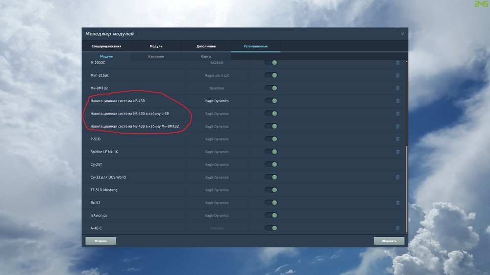 22.03.2020г купил в Стиме комплект Навигационная система NS 430 + NS 430 в кабину Ми-8МТВ2 + NS 430 в кабину L-39С. Все модули были успешно привязаны к аккаунту DCS (играю не через Стим). Пару недель не заходил в игру. На днях запустил игру, а при входе вылезло сообщение об отсутствии активации NS 430 для кабин Ми-8МТВ2 и L-39С. Удалил эти модули через менеджер модулей для переустановки. Заново установился только модуль Навигационная система NS 430. В Стиме в разделе DCL для DCS теперь доступен только модуль Навигационная система NS 430. В моем аккаунте DCS данные только об активации модуля Навигационная система NS 430.