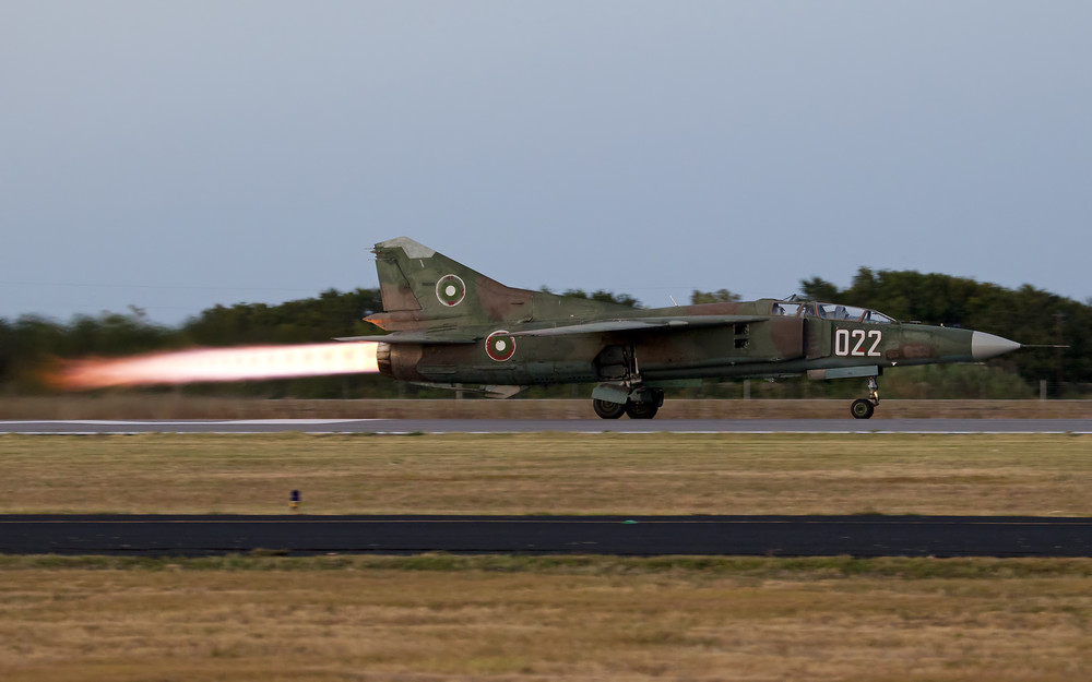 Like the L-29, the shortest takeoff in the L-39 can be made by over-rotating and "hopping" the airplane up in to ground effect then allowing it to accelerate. This is done with a sharp stick pull-push but great care must be taken not to get too far off the ground or to maintain too much AoA or the airplane will mush back to the ground.