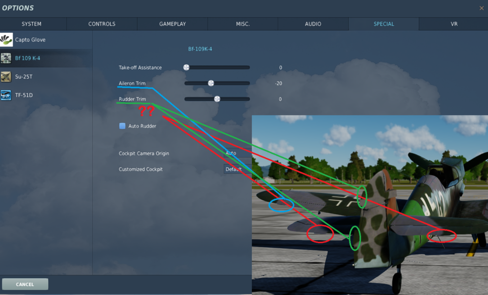 About those Bf 109K-4 "Special" Trim Tab Settings...