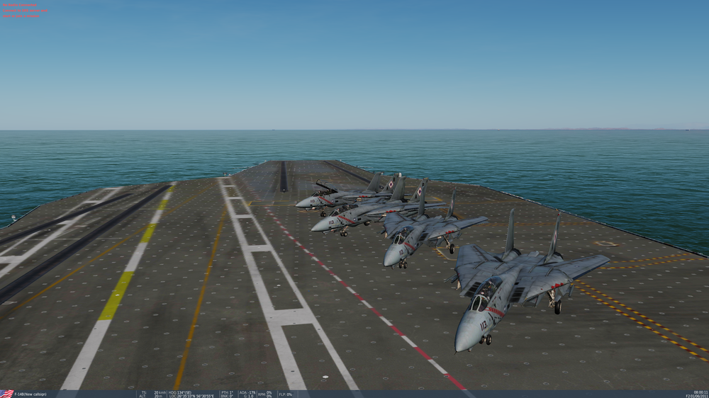 Ok hab's grad angeschaut tatsächlich...Bin mir nicht ganz sicher ob das mit Absicht so ist, weil bei den ganzen SP Missionen spawnst du auch so.. Bei einer vierer Formation würde vll der Rest vom Deck fallen? Aber mit Nosewheel Steering kannst du fast auf der Stelle umdrehen..