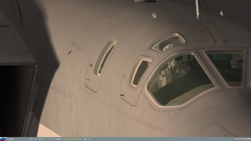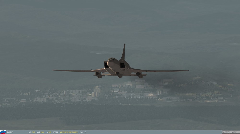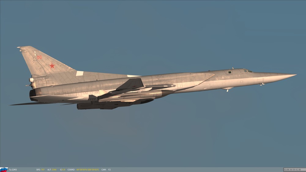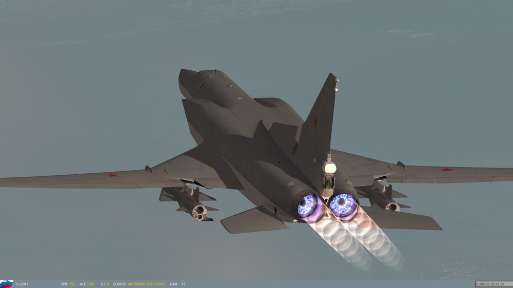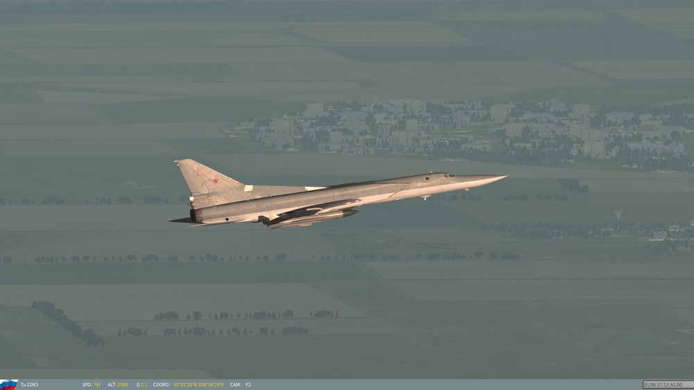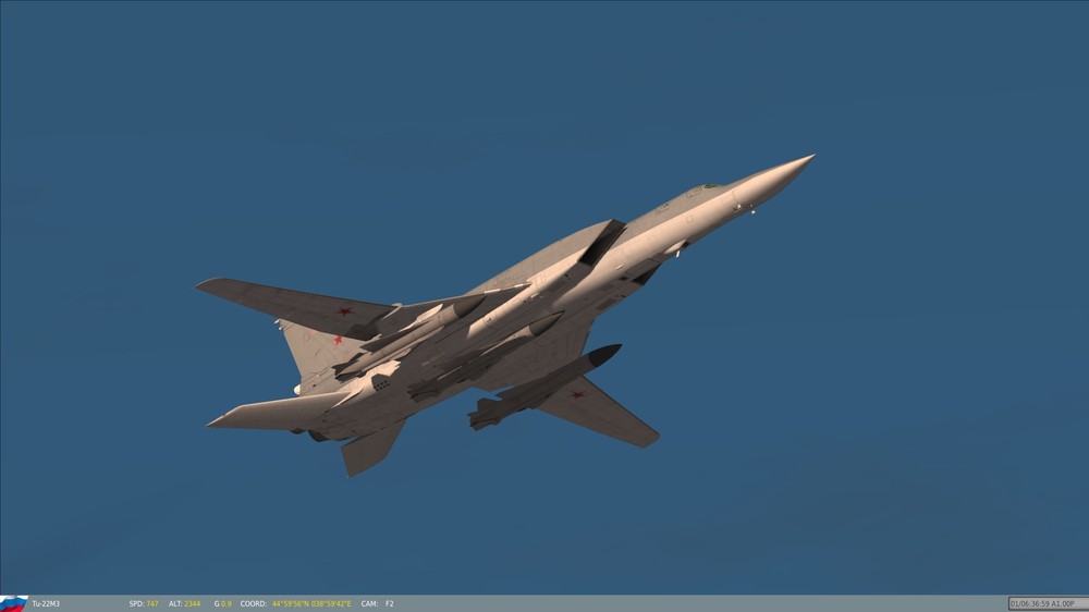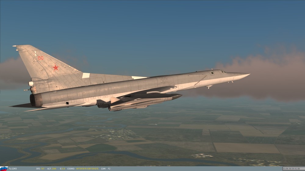 Hello Again, Friends: Back when I was in college, in Ronnie Reagan times, I can hardly remember a speech by President Reagan that didn't include some mention of the dreaded "Backfire Bomber". Even though I was sufficiently politically aware to have some inkling of a smoke screen when I saw one, Reagan's sense of urgency and passion went to soaring heights when he spoke about the "Backfire Bomber". It was surreal; Reagan didn't discuss the airplane in the context of a machine, operated by men, but rather, as an invincible, nearly almighty entity, that could single-handedly bring about the destruction of the American way of life. In fact, if one were to listen to his speeches, it would be all but obvious that the "Backfire Bomber" was a sentient, evil entity, that would, of its own accord, take off in the middle of the night, bomb our cities, kill our men, rape our women, and carry our children off to Soviet brainwashing camps, without a single Soviet airman lifting a finger. It's amazing what propaganda can do, and many of the Tu-22M1-M3's capabilities were grossly exaggerated, for purely political reasons. Fortunately, the Tupolev design bureau gave us something that was not only devoid of such evil, but also, in the eyes of many aviators, a beautiful machine, with flowing lines and graceful curves; the French deemed a Ukrainian unit the winner of a "Concourse D'Elegance" (Beauty Pageant for the non-Francophones amongst us) at Le Bourget, one year (I don't remember which), and, IMHO, for good reason. As far as "reasons" go, the one for my post is rooted in the fact that FC3 includes a gorgeous re-design (not just re-rendering) of the Backfire, and for those of you that haven't seen it, I urge you to have a look. My rig is good for 19 x 12 with everything maxed, and, believe it or not, the aircraft looks even better than it does in these screen shots, due to the JPEG compression used to make these pictures. I could shoot the thing all day long, but I will limit my exposé to the following few pictures. Have a look at it for your missions; aside from being beautifully re-done (nice job, DCS!!!), it will actually out-accelerate any other aircraft I've put against it, that's carrying a combat load (at 10,000 metres). Regards, Dr. Nathan Stahlwirth, PhD., ME, PHY, SAE