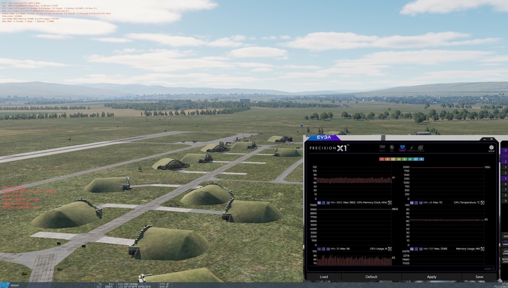 3090 Consistent frame/ gpu usage dropsAurora juutilainen replied to Aurora juutilainen's topic in Game Performance Bugs green is far away from the player airfield in the attached mission yellow is when I am looking at the airfield and move the free camera closer to it red is when I move the free camera even closer to the airfield as for the fps locking to 65 sometimes on Persian gulf I have no clue CPU is not downclocking and staying around 5GHz temps seem stable for both GPU and CPU 16 mavs.miz