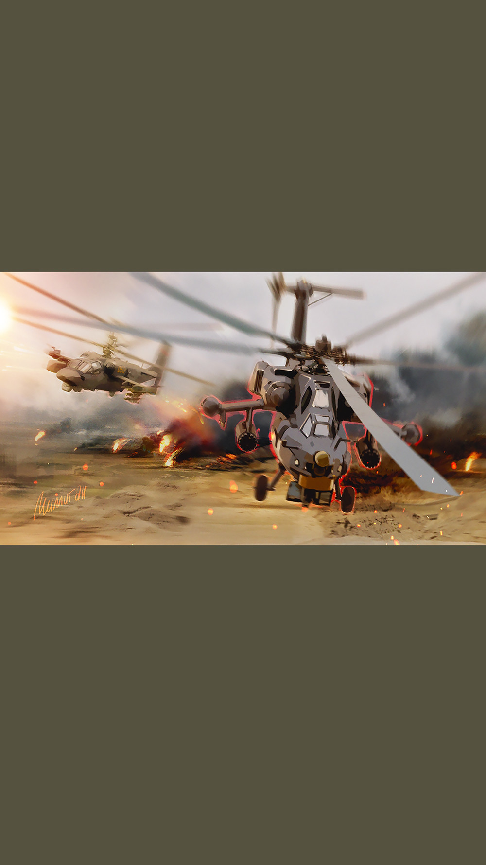 За основу был взят окрас реального Ми-28 старого образца, по цветам так же старался максимально близко подобрать оттенки.
