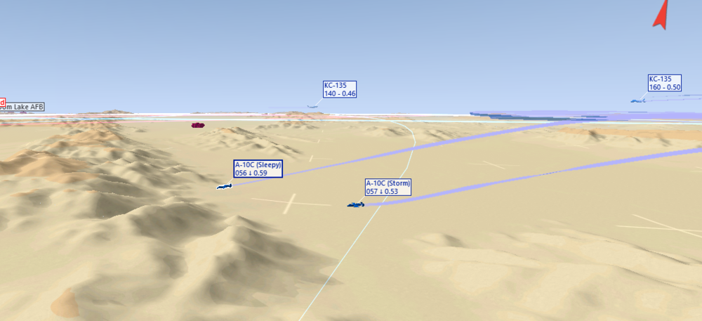 If you've got the grit to stick with it when things get challenging and helmet fires start raging, then you can learn about any tactic, technique, or procedure out there. Never stop learning and shoot to make every flight better than the last. Now that we've built an idea of what a standard shooter/cover pass looks like, let's build on it. In this post I'll introduce the principles of holding and terrain masking. Sometimes getting kinetic demands precision. If you want your element to strike a particular target via a well choregraphed strike, you're going to need time to set that up. Let's take a look at how we can gain that time. Here's an idea of what we're dealing with. We've got a two ship, led by Sleepy with Storm flying as the wingman. We're out in the desert engaging T62.04, three echelons of tanks. Our targets static and aren't going anywhere and we're trying to complete some precision strikes on specific targets, which means we've got plenty of time to hold and plan everything out for a solid fighter to fighter brief. Today's DLOs or desired learning objectives are to build proficiency with attack geometry, practice some terrain masking, and complete a few holds. The hold is flown over a small patch of terrain, with a local cluster of terrain peaked at 6018ft between our IP (RED 12) and the target. This carefully planned setup is going to give us the opportunity to spot targets with the TGP while in the hold, dive into terrain on the in leg, and pop out of it to execute our attack. First, Storm and I complete our FENCE checks and arrive at RED 13 and begin the upwind leg for our hold. I've drawn a very high quality red box around our specific target to aid in identification. Here, we complete talk-on and datalink handoffs as demonstrated in the post above. While we are completing this task, we must also fly the hold. Today's flavor of hold is a racetrack flown in wedge. The contracts for the hold are as follows Wing will swap sides (left/right) in the wedge when changing hold legs (upwind/downwind) Wingman will strive for a 1 mile, 30 degree wedge, but will prioritize tactical responsibilities (vis flow, info flow, etc.) over station keeping. Medium altitude, >10,000' AGL, jets will target 1500pph per side to regulate fuel flow. Low altitude, <10,000' AGL, jets will target 2000pph per side You can see that Storm here is definitely taking contract 2 to its full liberties here, but we're still in the hold and looking acceptable. I'm more concerned with him having his pod on target engaging in good talk-on than holding a perfect wedge. Once the talk-on is done and we've passed the fighter to fighter brief, we depart our IP (RED 12) and run in on the target. Looking at the vertical profile, you can see how once we begin the run-in, we immediately head to terrain mask. Now, when it comes to terrain masking, let's take a step back and think big picture. Like, really big picture. All warfare is based on deception, as some dude who was probably important said, and we must deceive our opponent. When working with masking, I like to think of my A-10 as a submarine. A kind of submarine that doesn't go below 0MSL except when flying in the Netherlands. Think of being in the hold as being at periscope depth, searching for your target. Obviously you must have some line of sight to the target to acquire it, so the odds are quite good that while you are watching the enemy, the enemy is watching you. If I were a Warsaw Pact scrap metal concessions stand employee and an A-10 was in my area of operations, I'd probably never take my eyes off of that devious monster except to wipe them free of my commie tears. When we get down and mask ourselves with terrain, the enemy may reasonably assume that we are on the offensive and prepare themselves, but we deny them critical knowledge such as our attack heading and time to target, along with any information they can extrapolate from that. You can see Storm and I dive for the dirt in an attempt to mask here. Now, this may not look terribly effective, but let's take a look at things from the target's perspective. Here we are in the hold, clearly visible to our threat. However, when we dive down and mask: Do you hear that? In the distance? It's the sound of this tank crew softly sobbing. You can see here as shooter (Sleepy) pops up to unmask and employ, cover (Storm) remains masked until he runs out of terrain... just in time to begin arcing the target and clearing the shooter in visually. After Shooter engages and comes off, you can see cover does some fancy maneuver to rejoin shooter wedge and egress back to the hold. As we egress, we stay low in the terrain to avoid retaliation from any potential threats. After egressing back to the hold, Storm and I swap roles and head in for a reattack, with one key difference. On this attack, Cover is also going to perform the role of decoy. Decoy is going to remain unmasked as he proceeds towards the target, hoping to draw the attention of the enemy armored force. When shooter begins his pop-up decoy becomes cover and moves to arc the target area and meet his contracts. (Visual on target, visual on shooter, AGM on stby) Poor enemy armor never knew what hit it. Attack's complete: flow wedge, flow back to the hold, set it all up again. -