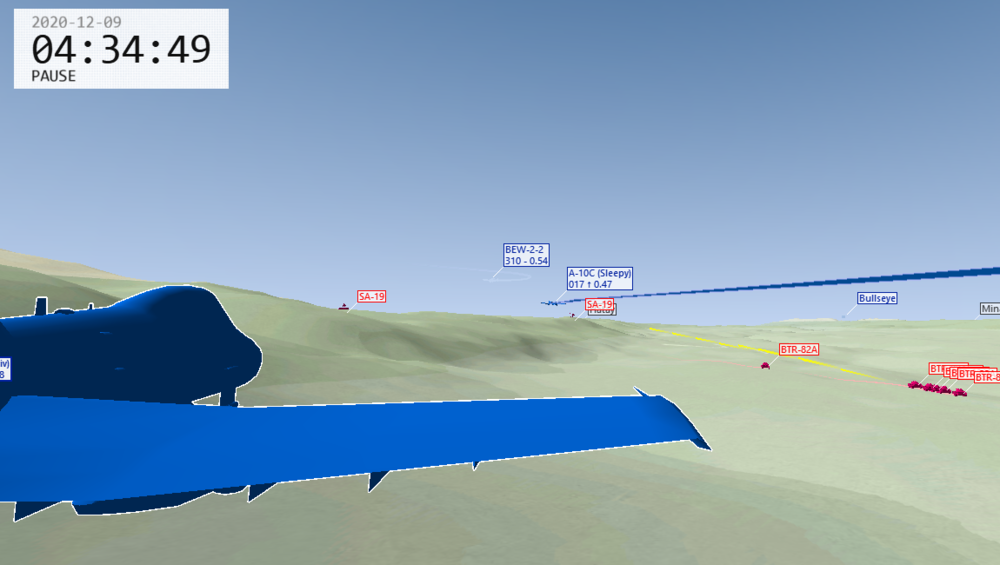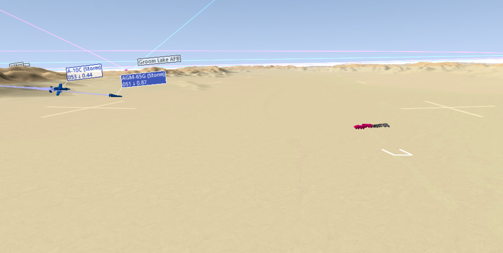 Says the one that flies this stuff with me and helps me formulate geometry! Thanks all for the positive comments guys! Let's take a look at the specifics of a Wedge Shooter/Cover pass. In this pass we have a pair of A-10s piloted by Storm and Sleepy. Storm is flight lead and will assume the roll of shooter for this pass, and Sleepy is the wingman and will assume the role of cover for this pass. The target is a cluster of BTRs to the northeast of the flight, which flight lead happens to spot visually but the wingman does not. If this happens, lead and wing will conduct datalink handoffs or verbal "talk-on" to get both ships looking at the right targets. Sometimes greater talk-on than provided in today's example is required to target perhaps a specific single BTR within a formation, but for today, all targets are equal priority and sort is at shooter's discretion. In this specific employment, it is important to understand that for cover's specific contracts, he does not need to know the individual BTR shooter is engaging, and as such, the flight doesn't waste any time passing that talk-on or data, which is actually quite challenging to do when you are in the middle of a bone-empty desert with no solid reference points. Calls like "sort western BTR" are absolutely useless in cases where you have a large, Fulda Gap tier formations of targets (even though our target today is only a small formation). It's like telling someone taking contact during a firefight in a forest that "THEY'RE IN THE TREES!!!!" Here are our contracts for today's pass: General Visual, naked, no joy, saddled, cleared, supporting are all assumed After rejoin, the flight will egress to the IP Flight will end the employment in the same formation as when started (this contract is specified by the lack of remarks of formation change in the fighter/fighter brief) Shooter Shooter will begin broadcasting his SPI when he turns in Shooter will begin his SEM immediately after employment Shooter will maintain MIL power once in until established off to maximize maneuvering energy Cover Cover will remain visual on shooter at all times Cover will remain visual on the target at all times Cover will make supporting maneuvers in the direction of shooter's off pull Cover will fly no closer to the target than the distance of shooter's employment Cover will keep the target in-front of his wingline at all times to maximize visibility Cover will visually clear shooter into, onto, and off of the target Cover will immediately call any AAA or missile threats and provide shooter with directives for a successful defense if able Cover is HOT, a 163rd vFS standard meaning that an AGM-65 will be kept on standby and should a threat engage shooter, Cover is immediately cleared hot if visual on the threat and is expected to immediately max perform the jet's nose onto target and rifle within 6 seconds of threat acquisition There's a lot of other contracts involved in there too, but I'm lazy and don't remember all of them at the moment... Those are the big ones. Lot's of stuff for cover to do. The pass begins with the flight in a wedge formation, sanitizing the valley for targets. Fighter to Fighter Brief example, with datalink talk-on: Lead would make the BTR formation his SPI via any suitable method, and send it to wing via tasking or SPI donation. At the 163rd vFS we prefer tasking because it puts a nice big red triangle over the target in the HMCS and on the tad. Our contracts specify that shooter donates SPI while in hot to give cover a view on the HMCS of shooter and his path to target, so we try and avoid using it outside of attack runs. Here, Lead will make his 30 seconds to rifle call, which is both an informative and a directive call. Cover will respond to the directive by executing a maneuver at his discretion to meet his contracts. In this case, wing has elected to arc the target. Cover provides a press call to shooter here, to let him know that everything is looking good so far from his end and that he's cleared to continue the attack. [Lead executes his turn in .] [Shooter fires his AGM-65, and begins his safe escape maneuver (SEM.)] As we can see here looking out of cover's cockpit, cover is meeting his contracts: He is visual on both the target, and shooter. Cover has an AGM-65 on standby to engage any potential threats. Lead here makes an optional call to wing here to let him that he wants him to return to the wedge formation. This call isn't required as it is assumed that is what cover will do after the pass, but none-the-less it helps shooter and cover with their mental flows. Here, cover executes an in place 270 degree turn to rejoin wedge. And this completes the pass! All contracts have been met and the attack was successful. Lead and wing will egress as fragged, and set up for another pass. -