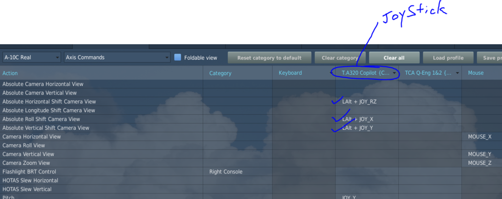 I dont think I ever understood that you GET to SNAP VIEWS by pressing rt CTRL 0 ! oh my. Which allows you to press a num pad value to lock into a view ! whaaa ? Well I wanted to change a couple of them but I couldnt get a good camera position to LOCK on any view; Mouse wheel didnt work - PAUSE didnt work. - UNTIL i setup AXIS binding to Absolute Horizontal Shift Camera (and Vertical), to my CTRL + JOY STICK Axis (pitch and Twist) to move the cursor around the PIT and ZOOM or PAN the camera exactly. And discovered from this video that you could record and replace these Snap Views, using the magic keys. Who knew this first Id like to know. You really need to Slew the camera not just PAN like your sitting in the seat... you want it to move left and right and up and down (Absolute Horizontal and Vertical so called) So once yuo have the view setup, press WIN (num #)- then rt ALT 0. num # being the number of the SNAP view you wanna replace, ALT 0 to record it. BIIIG BLACK BOX. "...After you have it configured just bind the keys/buttons to the created snap-views. ..." Nothing to it -