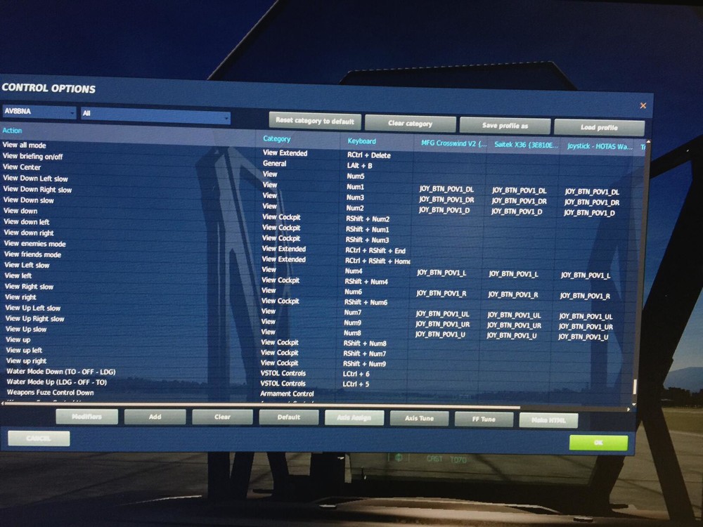 hitting OK does not save the controls for Me I have to re do ALL my controls every time I play. When I save the warthog joystick, I can then load the joystick and its fine. But every time I turn DCS on, both the Throttle and pedals are loaded with stuff I do not want. So after reading this, I guess I have to save each one, one at a time as setting everything up and then clicking save does not save the pedals or throttle. I am mostly flying the harrier and just wish I could figure this out. I have not tried going into any saved game area and looking for lua files so any help would be much appreciated. -