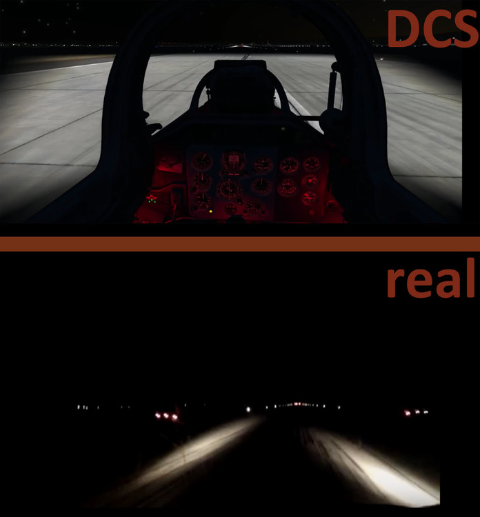 I made a similar post in other thread about L-39, but maybe if I spam it enough devs will stop ignoring the issue :D Lights in L-39 DCS look like this: while in reality they are supposed to look like this: or (taxi, then landing setting) = too bright, cones too wide, color slightly cooler (hard to compare to DCS colors tho) It's a giantic difference and current lights make night flying in DCS very unpleasant. I have no clue if it's an issue with L-39 or DCS, but my money is on the Albatros :) -