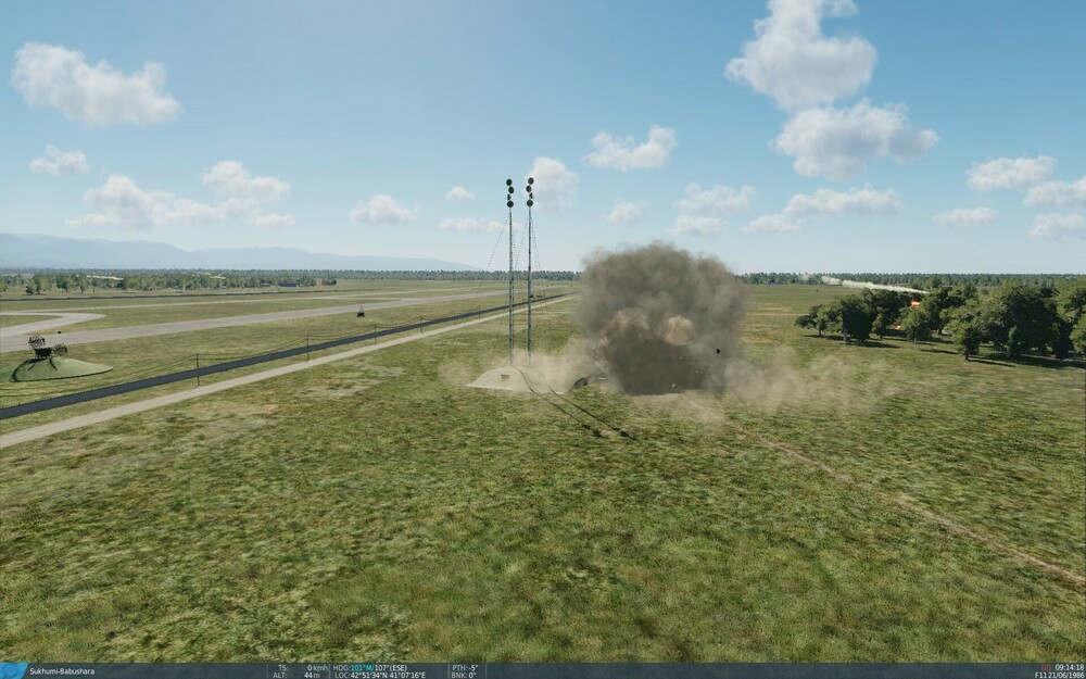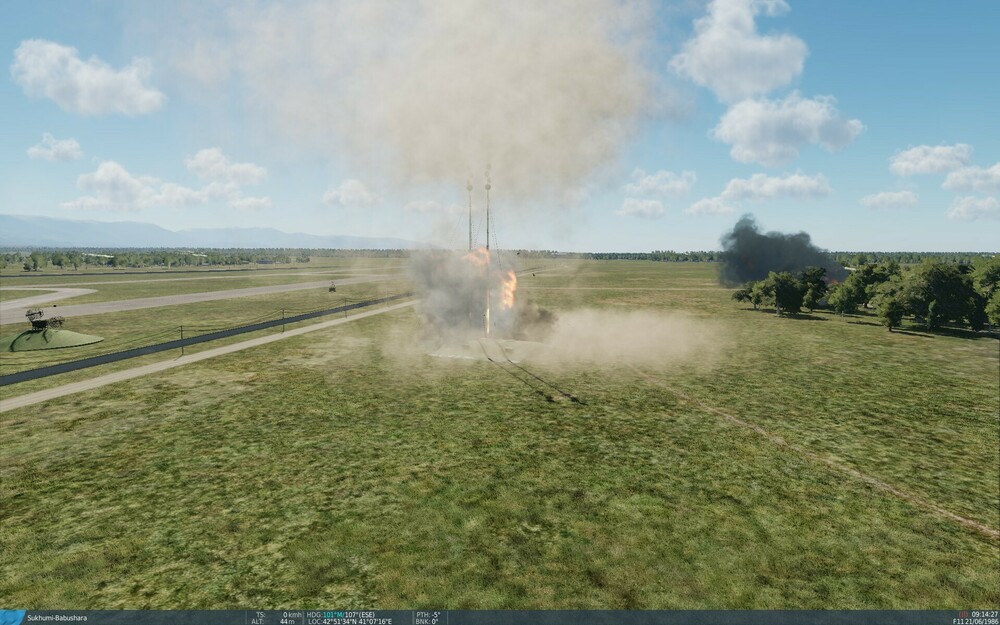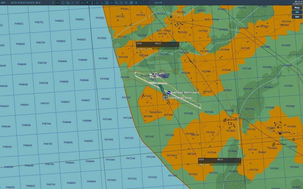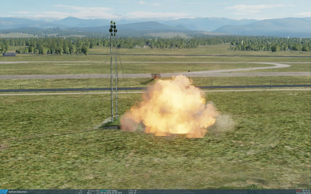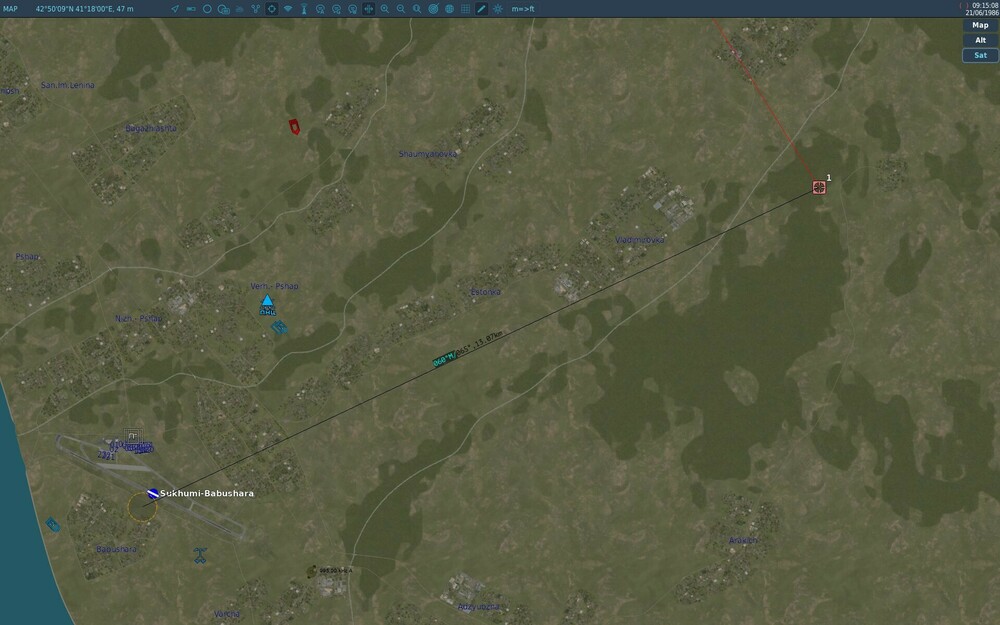 Was firing from Maykop to Sukhumi. Made a CC there and tried several times until this happened: The bearing deflection on 220716m is 13.7kms east on 151 deg 219km measured: This was the first salvo hit: Direct hit: