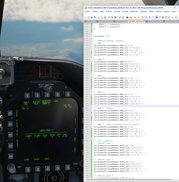 I believe, that CMDS_47.lua has bug with change of number of programs or MAN1 is not loaded in aircraft. Default: Custom program that MAN1 program is omitted. But why?